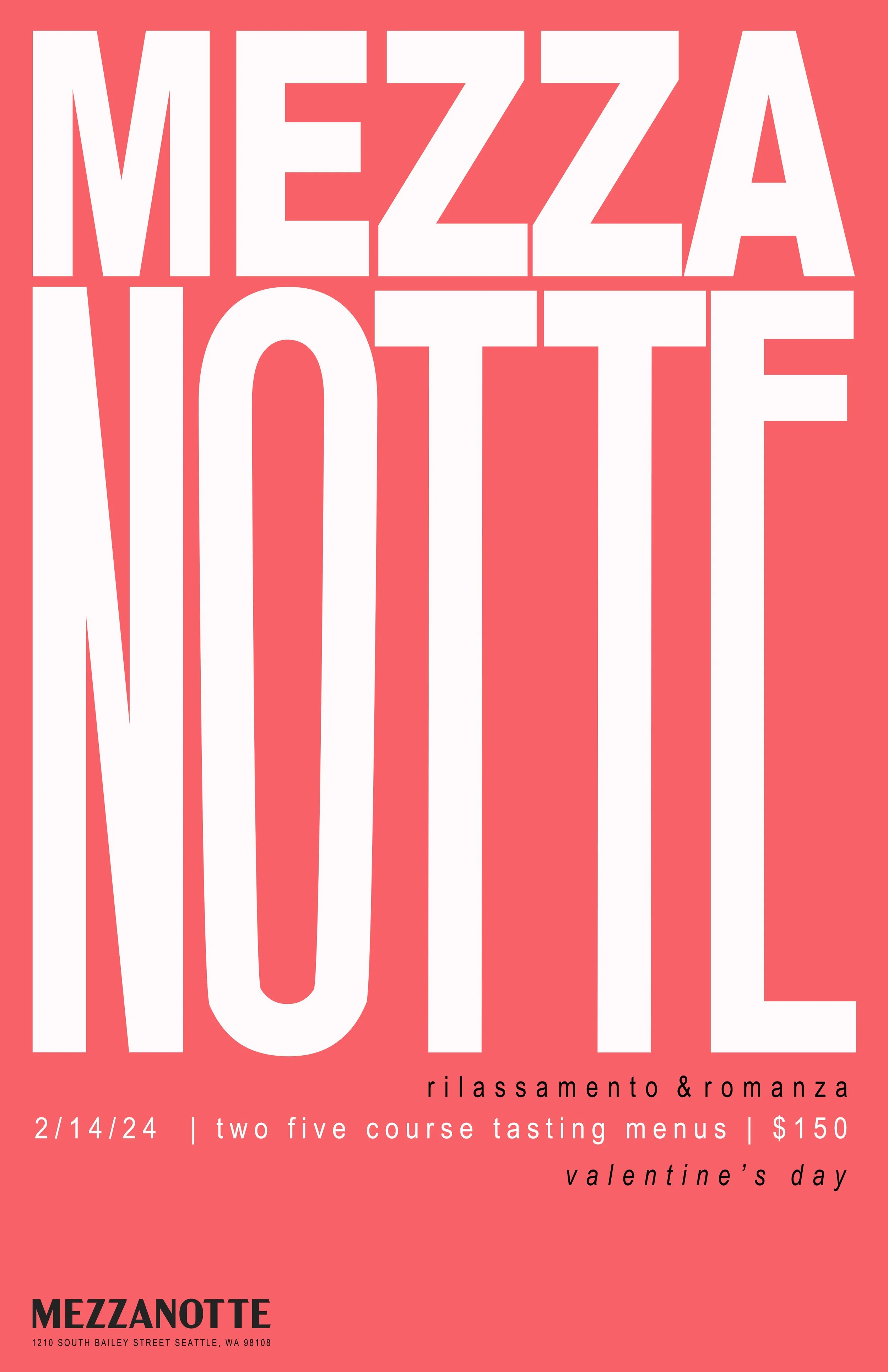 Join us on February 14th for Rilassamento & Romanza, an evening of passion and immoderate decadence featuring two five-course tasting menus and an optional bevande supplementari (cocktail and vino pairing) to help you celebrate the love that lies between us.